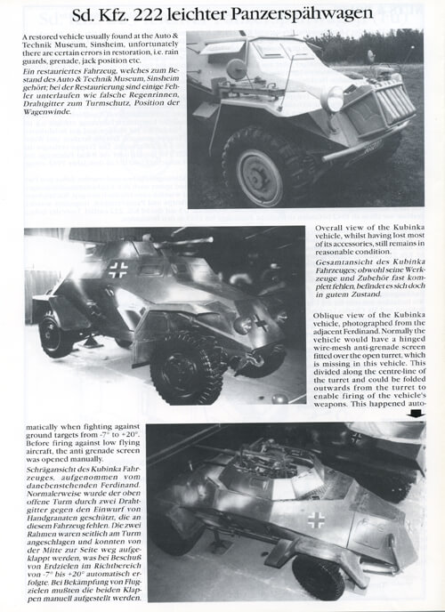 38 pages A4, 100 b/w photos of the surviving vehicles of the Patton Museum Fort Knox USA, Kubinka Tank Museum Russia and private collections, English/German text and photo captions, scale drawing 1:35 five views of both vehicles, first published September 20th , 1996, (out of print)