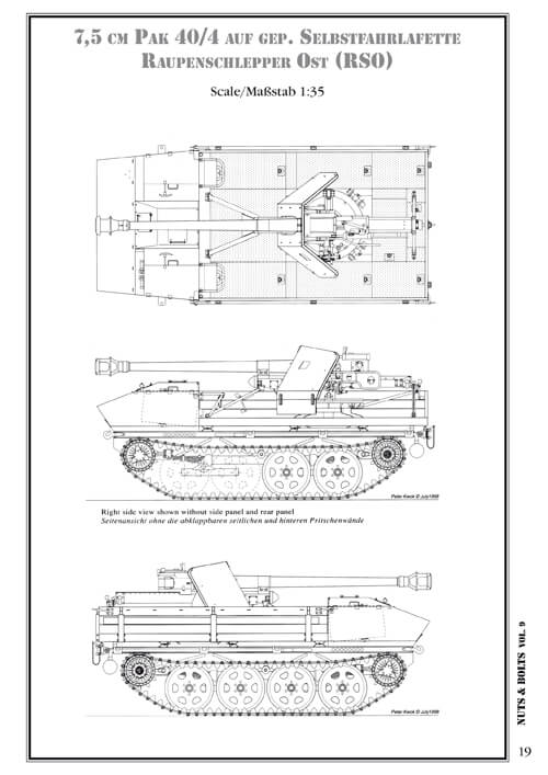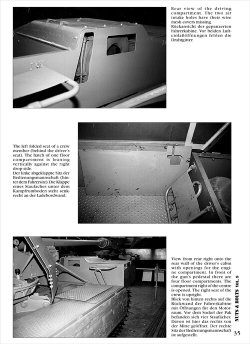 60 Seiten A4, 44 s/w-Aktions- und Archivfotos von 1943-1960 und 90 s/w-Fotos des vorhandenen Fahrzeugs in der WTS Koblenz, englischer / deutscher Text und Bildunterschriften, 5 Seitenansichten und Detailzeichnungen in 1:35 Maßstab des Fahrzeugs und Pak von Peter Kwok, Erstveröffentlichung 15.09.1998, vergrößert um 12 Seiten mit neuen historischen Fotos und neuen Zeichnungen, (wieder verfügbar ab 15.05.2010)