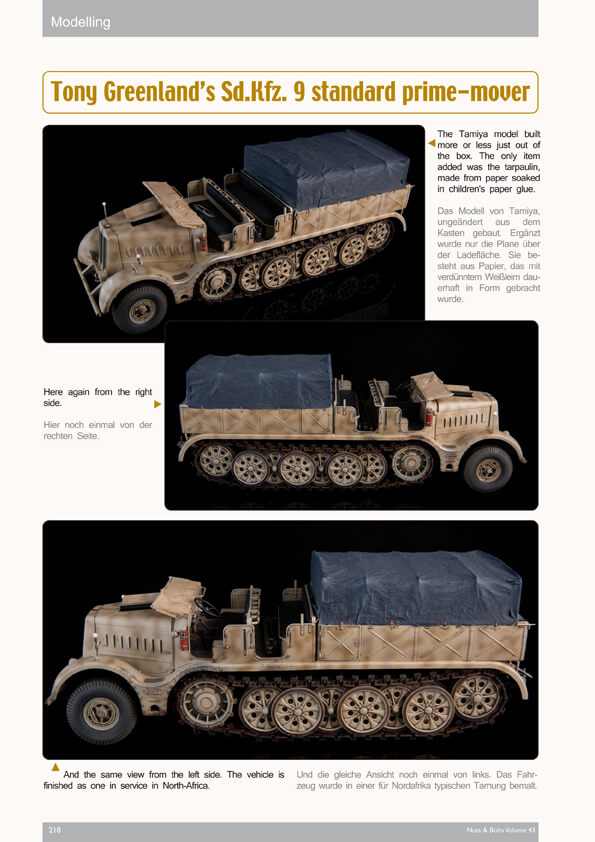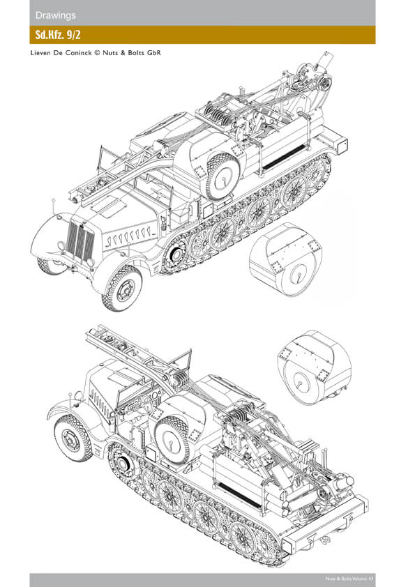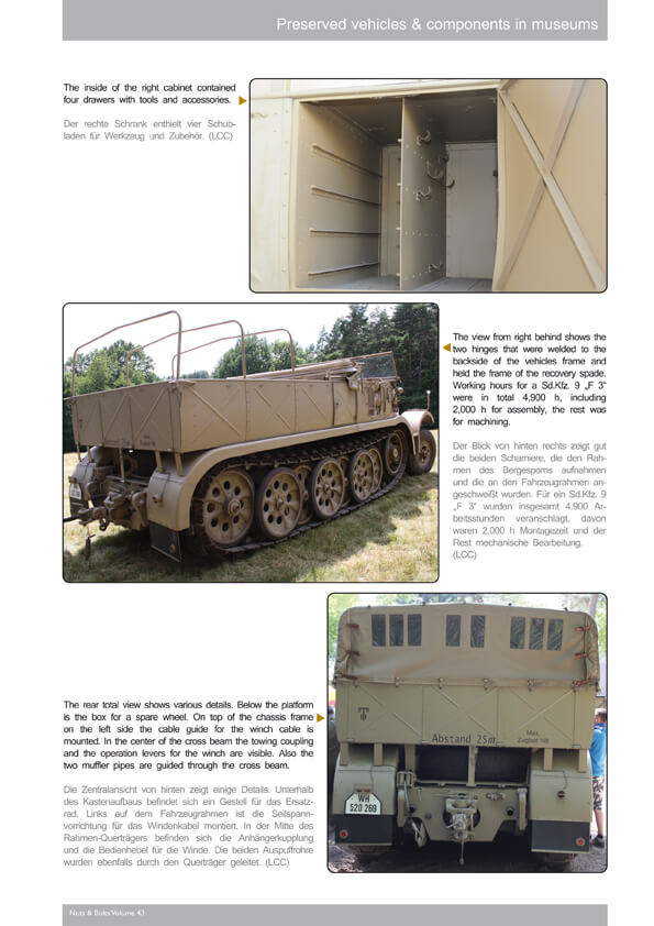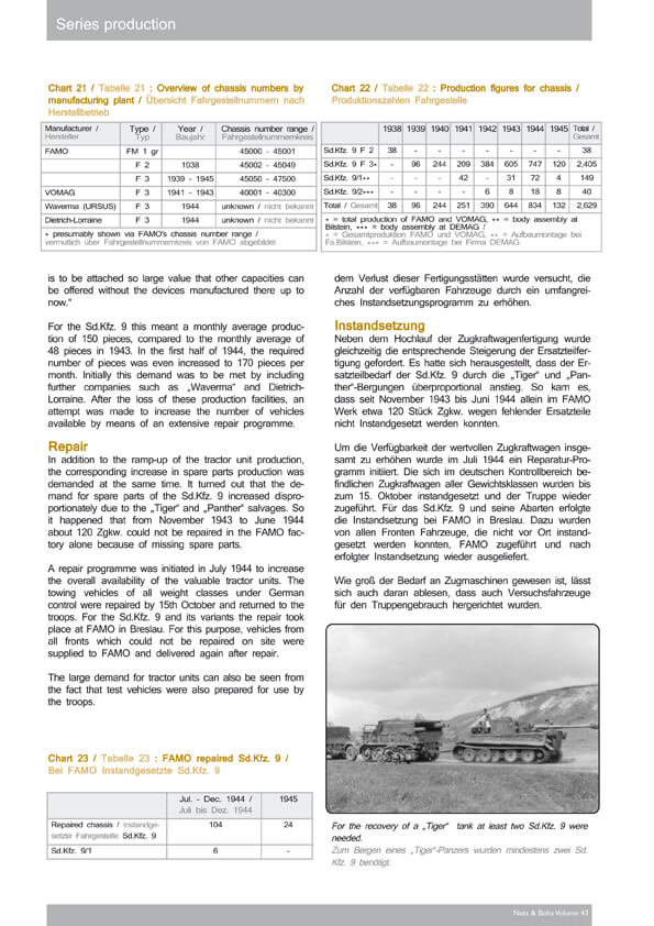 232 Seiten A4, Leimbindung, ca. 400 Fotos, davon 240 historische Fotos aus Vorschriften und Einsätzen in s/w, z.T. erstmalig veröffentlicht; 135 Farbfotos der noch existierenden FAMOs in Museen und privaten Sammlungen, 30 Farbfotos der von Tony Greenland, Vinnie Branigan und drei weiteren Modellbauern gebauten Modelle, deutsch / englische Bildunterschriften, 64 Seiten deutsch / englischer Text, 37 Tabellen, 29 Seiten Maßstabszeichnungen aller Versionen incl. Sd.Ah. 116 im Maßstab 1:35 von Lieven DeConinck, 16 Farbtafeln mit verschiedenen Tarnschemen von Laurent Lecocq incl. Markierungen und 4 Kriegsstärke-Nachweisungen KStN der mit diesen Fahrzeugen ausgerüsteten Einheiten, zuerst veröffentlicht 20. November 2019