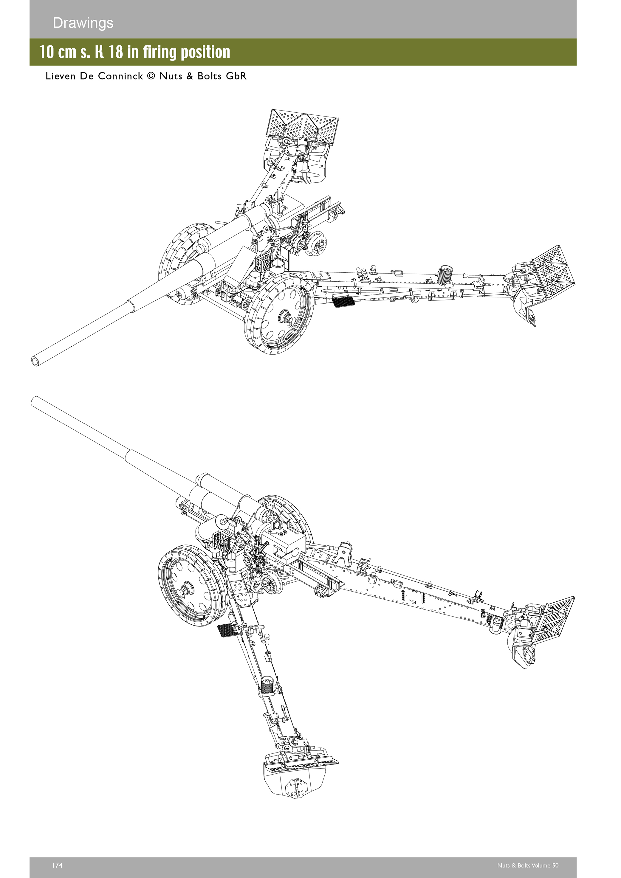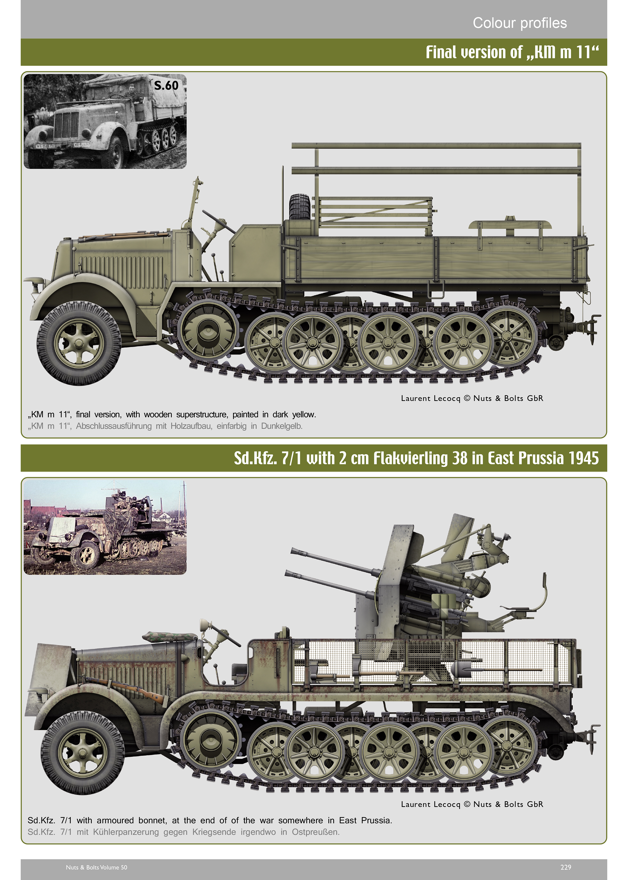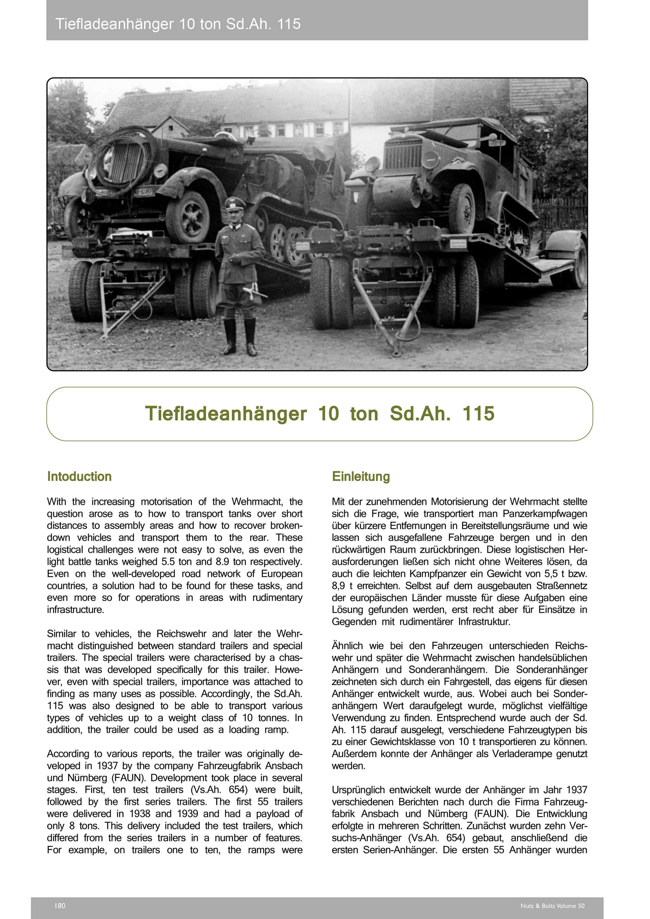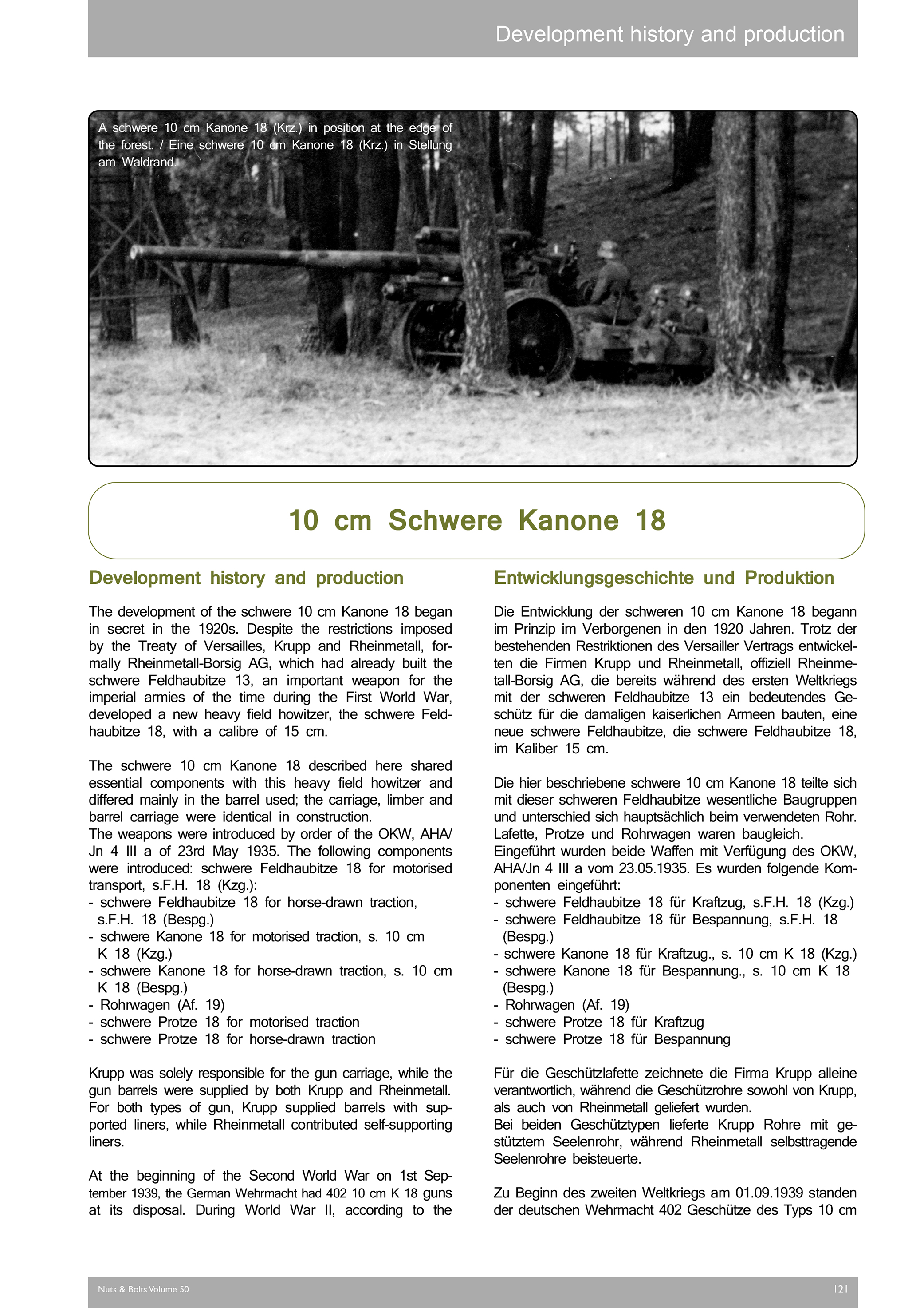 Herausgekommen ist ein im Umfang fast verdoppelter Band 50 mit 320 Seiten, ca. 320 historischen Fotos, ca. 250 Fotos von Fahrzeugen und Geschützen aus Museen und privaten Sammlungen, 110 technischen Zeichnungen des Sd.Kfz 7, der 10 cm schweren Kanone 18 und des Sd.Ah. 115, sowie 20 Tarnschemen auf Basis historischer Fotos des Sd.Kfz. 7 von Laurent Lecocq. Ergänzt wird dieses durch zwölf Kriegsstärkenachweisungen der Einheitstypen, die mit diesen Fahrzeugen und Geschützen ausgerüstet waren.